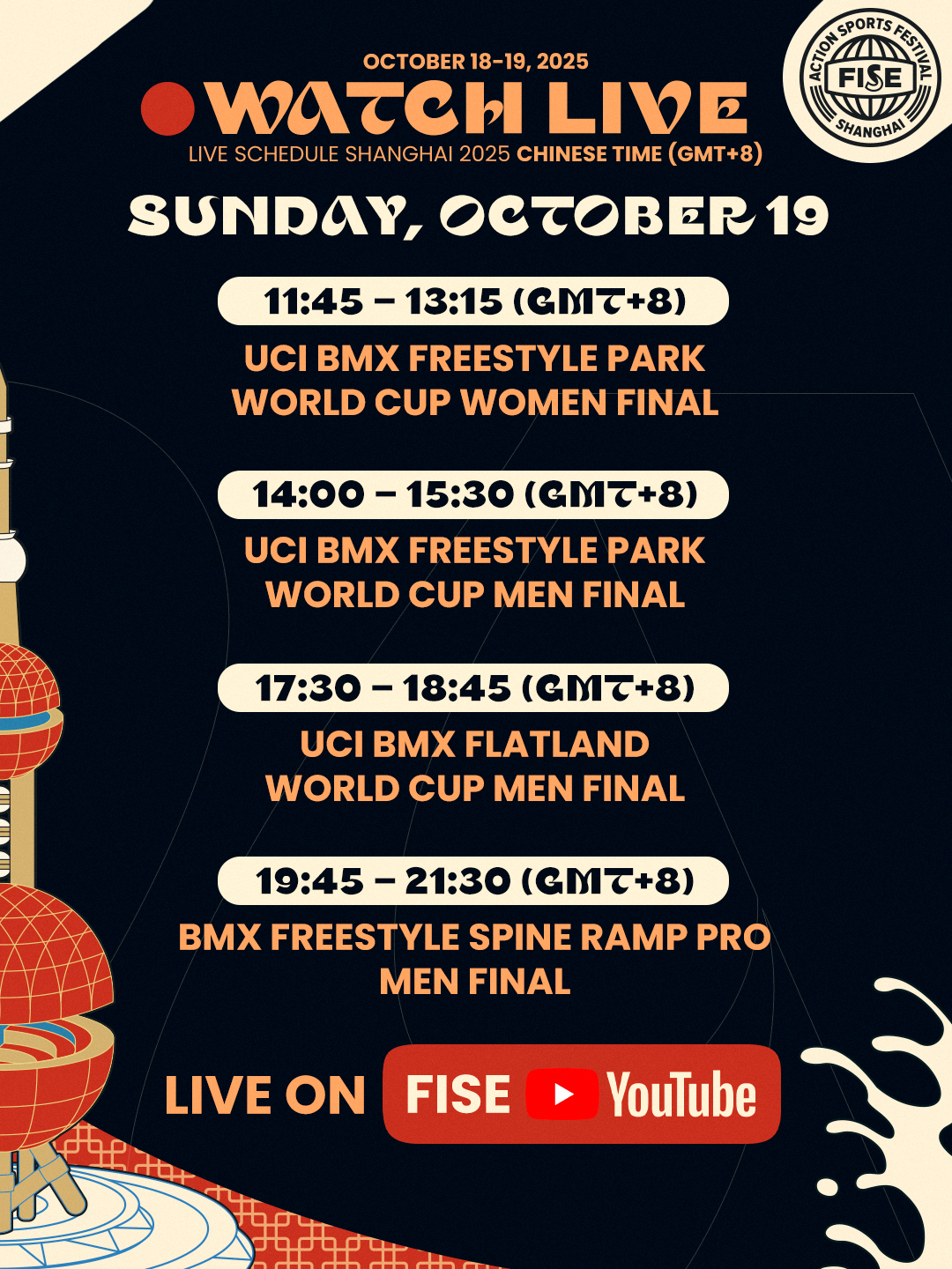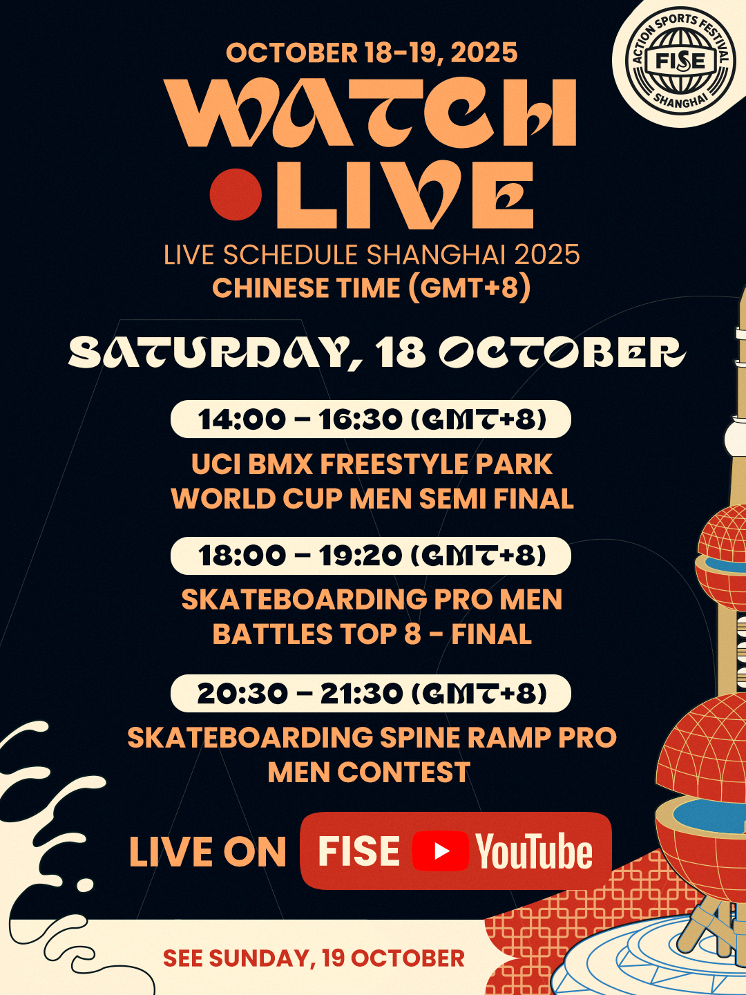 Here are all the finals and competitions covered by the FISE YouTube channel on Saturday, October 18 and Sunday, October 19! Stay tuned, we hope to see you there! 🔥