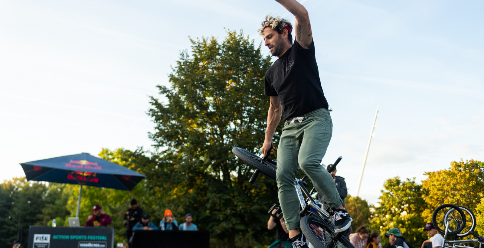Organisé sur une scène dédiée au cœur du Parc Léo Lagrange, la Coupe de France FFC de BMX Flatland profitait des gradins naturels permis par une bute en herbe. Les spectateurs étaient alors nombreux a s’installer pour encourager les riders, dont des références françaises tout aussi habituées de la tournée mondiale du festival. Alex Jumelin s’assure la première place de la qualification, en composant consistance, technicité des tricks, accompagnée d’une réelle envie d’en découdre. Raphael Chiquet (photo), originaire d’Epernay, a placé son signature trick bordé d’originalité. Anatole Rahain et son riding technique complète le trio de tête. A surveiller demain, Joris Bretagnolles qui a tenté aujourd’hui un run tout en bangers, qui peut lui permettre de remonter le classement s’il le réussit sans faute demain.